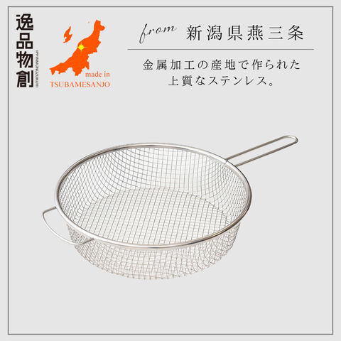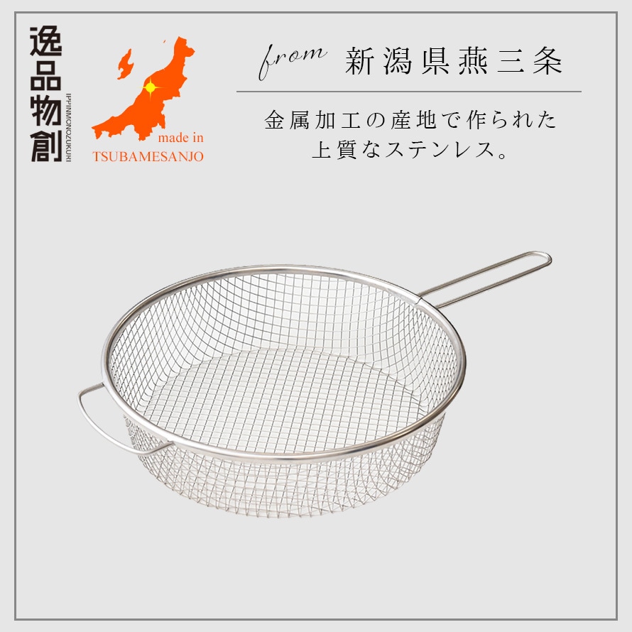 燕三条 ざる ザル ステンレス 取っ手付き 24cm 日本製 キッチン 調理器具 逸品物創 絶妙メッシュの水切りしやすい手付きザル