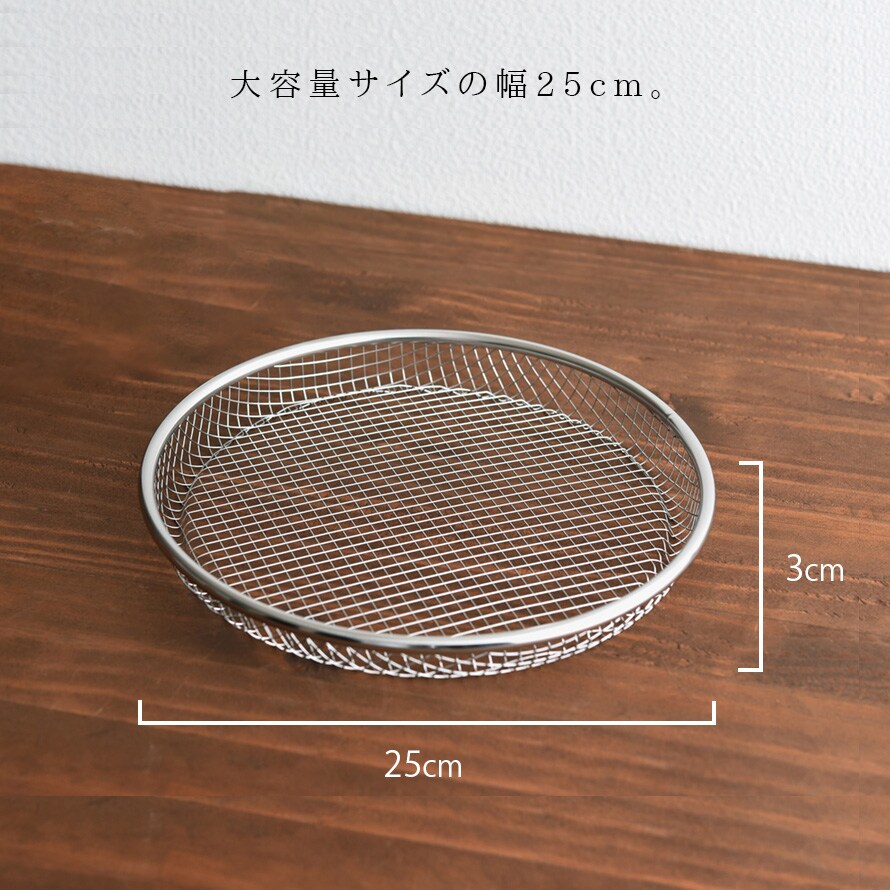 燕三条 ざる ザル ステンレス 25cm 日本製 浅型 皿 キッチン 調理器具 逸品物創 お皿のざる25cm