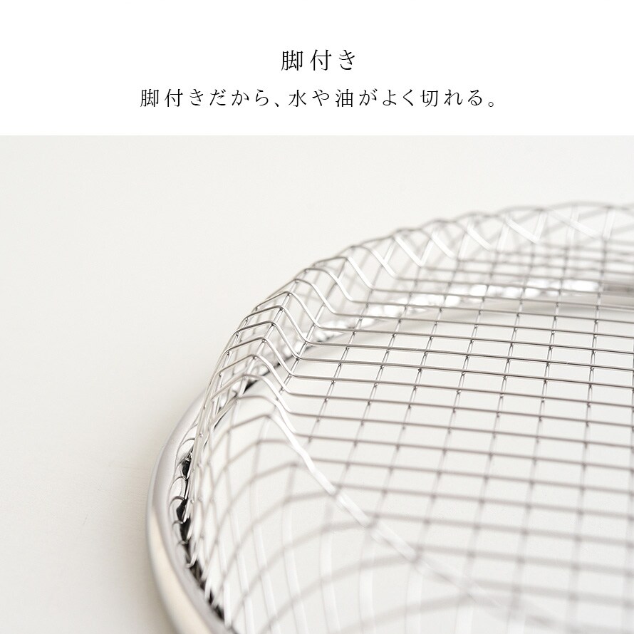 ご自宅のいつものお皿の上に乗せて使うことで、から揚げやてんぷらなどの油切りに使えるバットに早変わりする『お皿のためのざる』です。