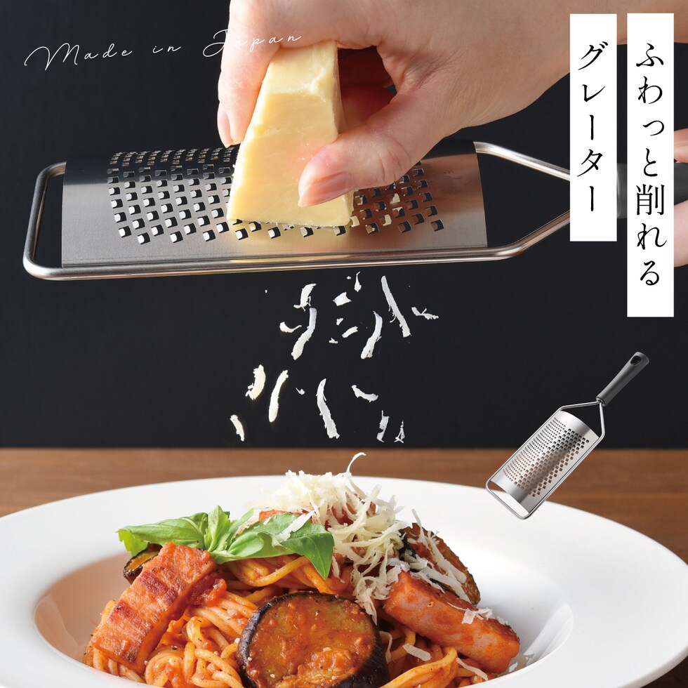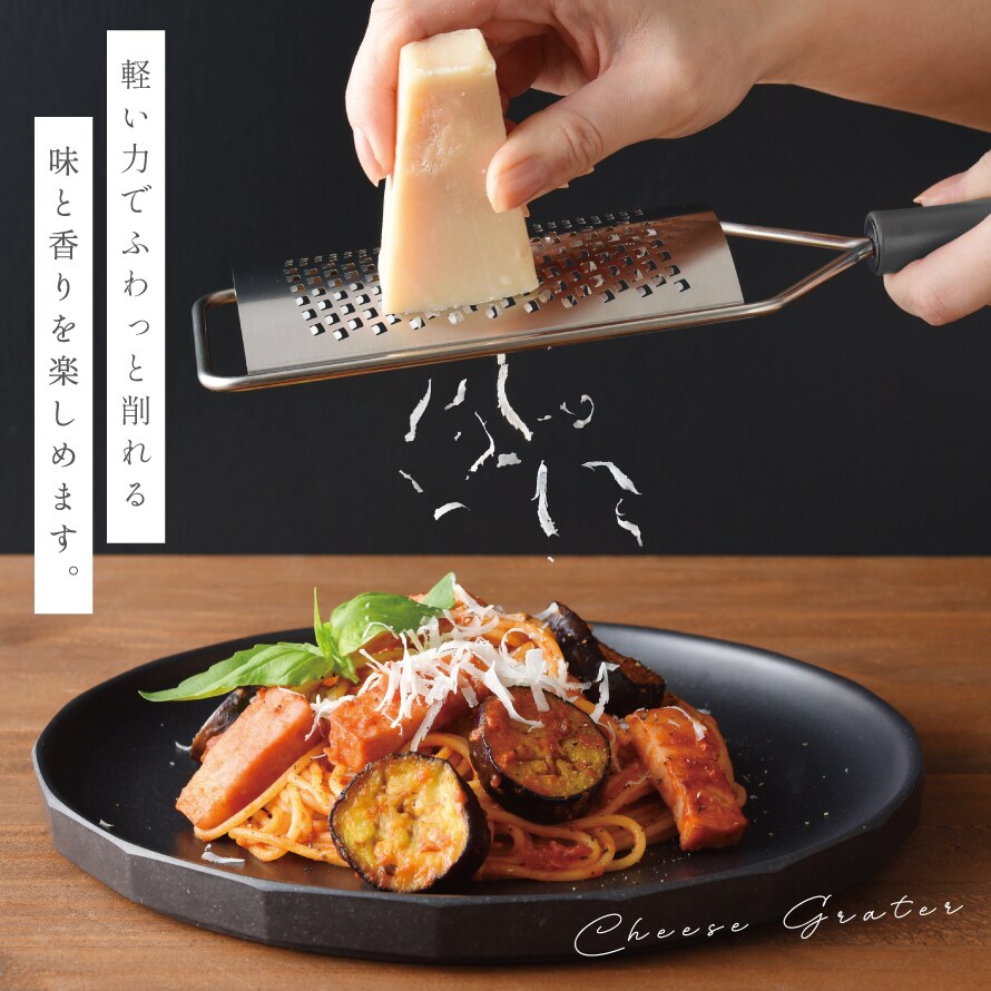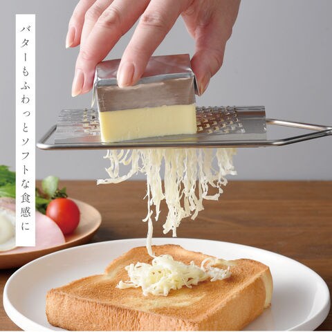 食パンなどにふわふわのバター、パスタなどにハードチーズから、レモンや柑橘類の皮、繊維のある生姜、にんにく、チョコレートなど色々な料理・トッピングに使用できます。