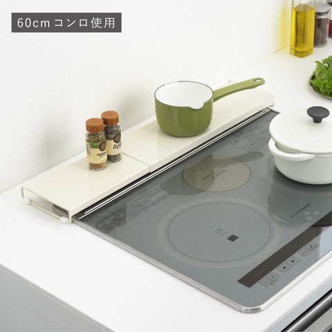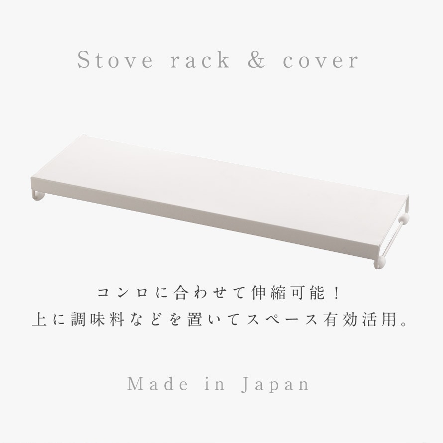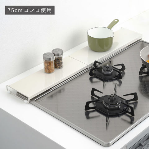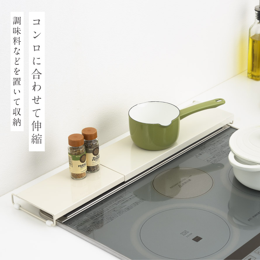 コンロに合わせて伸縮可能!上に調味料などを置いてスペース有効活用。