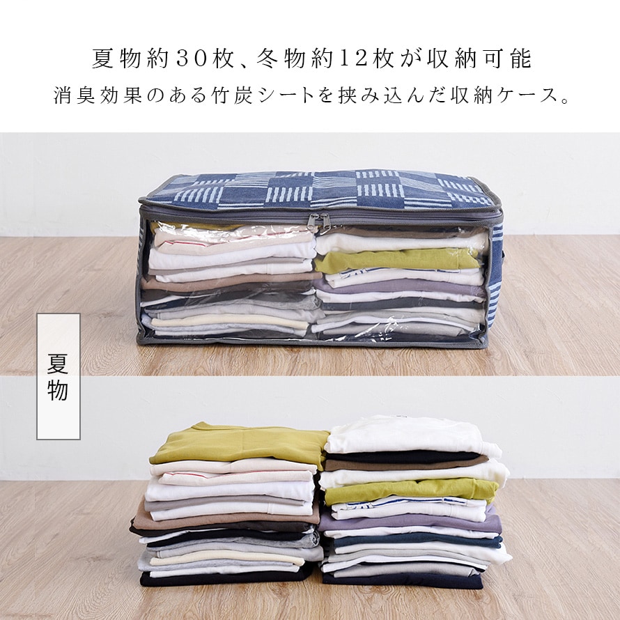 消臭効果のある竹炭シートを挟み込んだ、衣類収納ケースです。