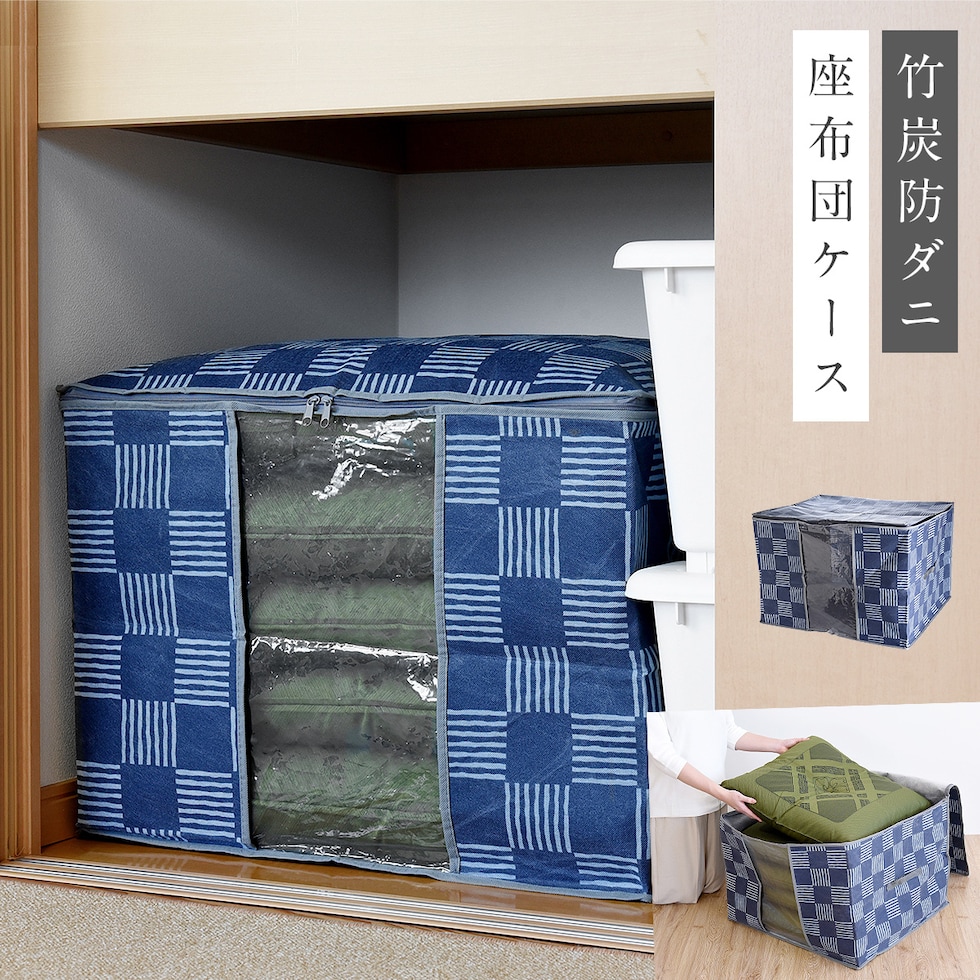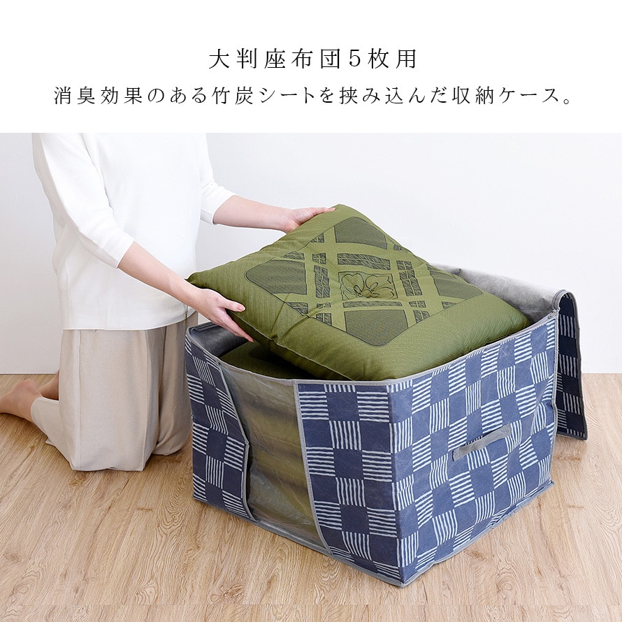座布団 収納 袋 防ダニ 消臭 竹炭 押し入れ収納 折りたたみ 押入 クローゼット 竹炭防ダニ加工収納ケース 座布団