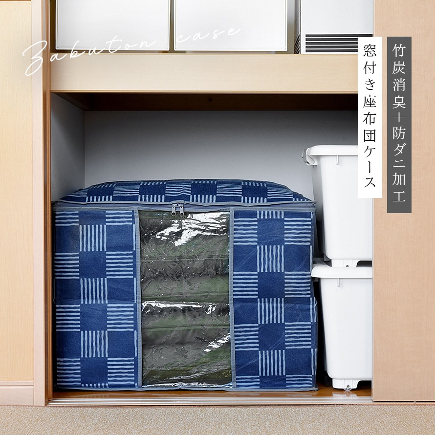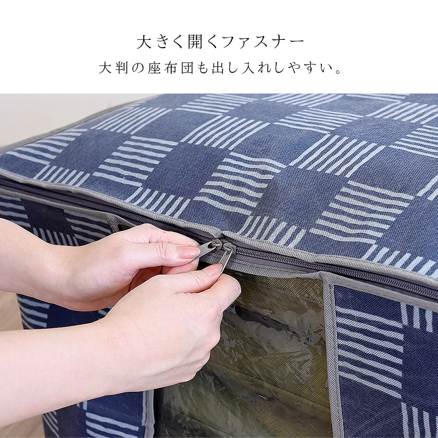 消臭、防ダニ、窓付き。大判座布団を臭いとダニから守る。