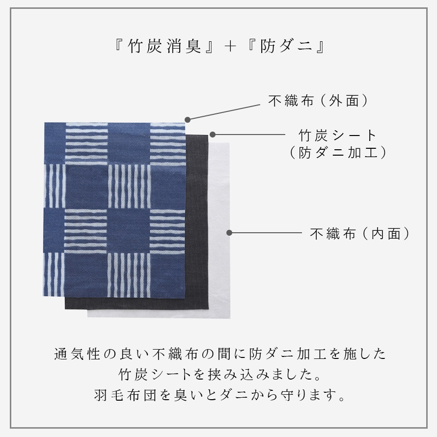 消臭効果のある竹炭シートを挟み込んだ、羽毛布団収納ケースです。