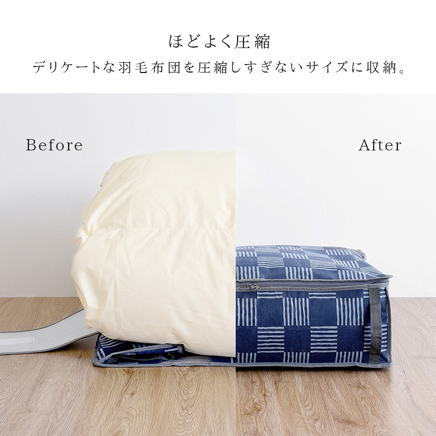 大きく場所を取り、デリケートな羽毛布団を圧縮しすぎないサイズですっきり収納できます。