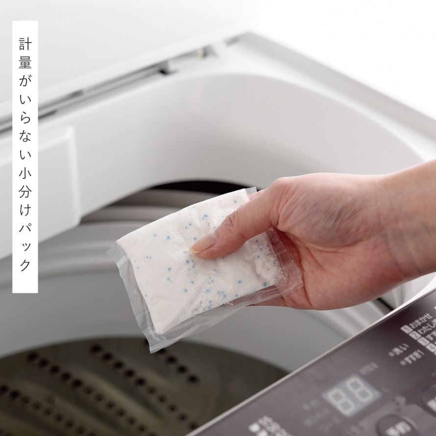 水溶性フィルムを利用した小分けパックで袋のまま入れるだけ。計量なしで気軽に使えます。