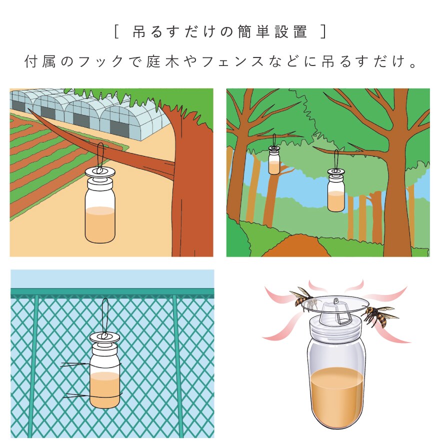 吊るすだけの簡単設置の業務用スズメバチ誘引捕獲器。