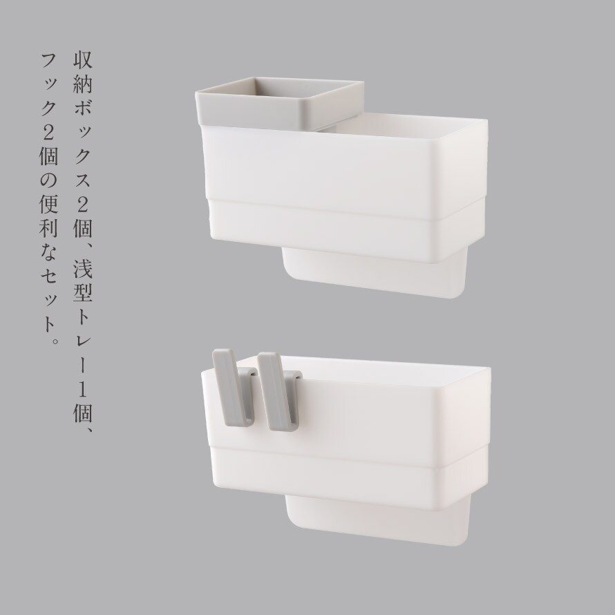 | セット内容 | 収納BOX2個、浅型トレー1個、フック2個 |