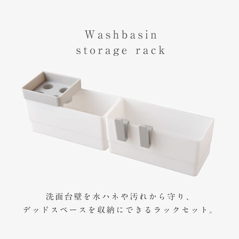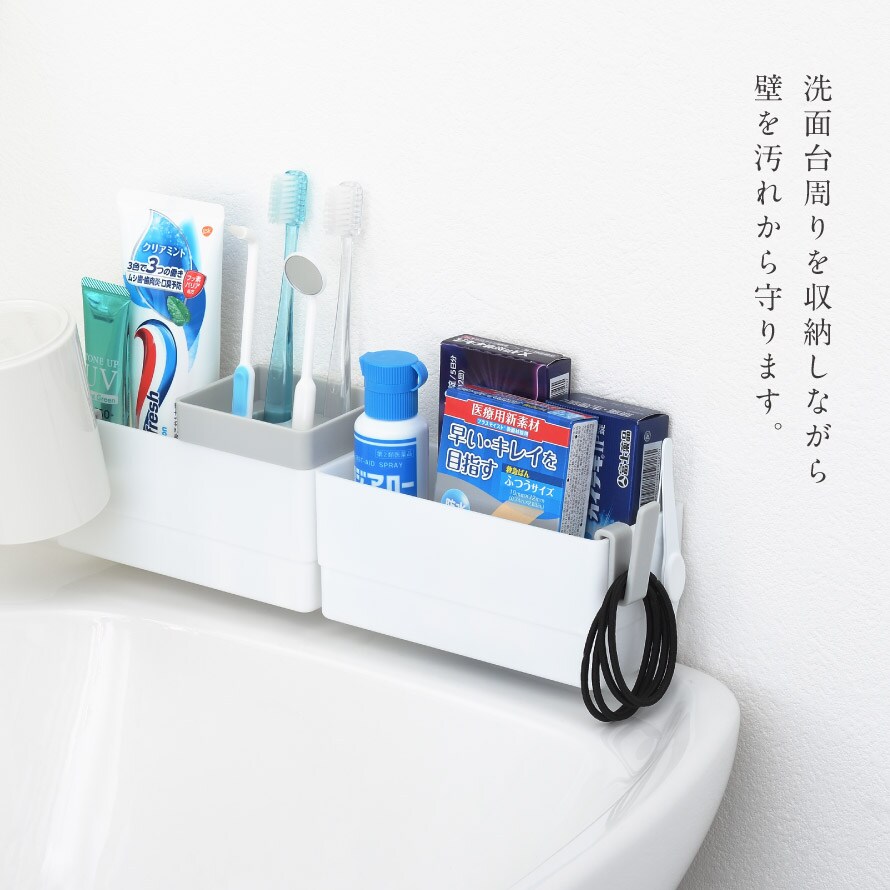 洗面台 収納 歯ブラシスタンド 小物収納 収納ラック 洗面台横 収納ボックス 洗面所 洗面室 洗面台水ハネカバー&小物収納ラック