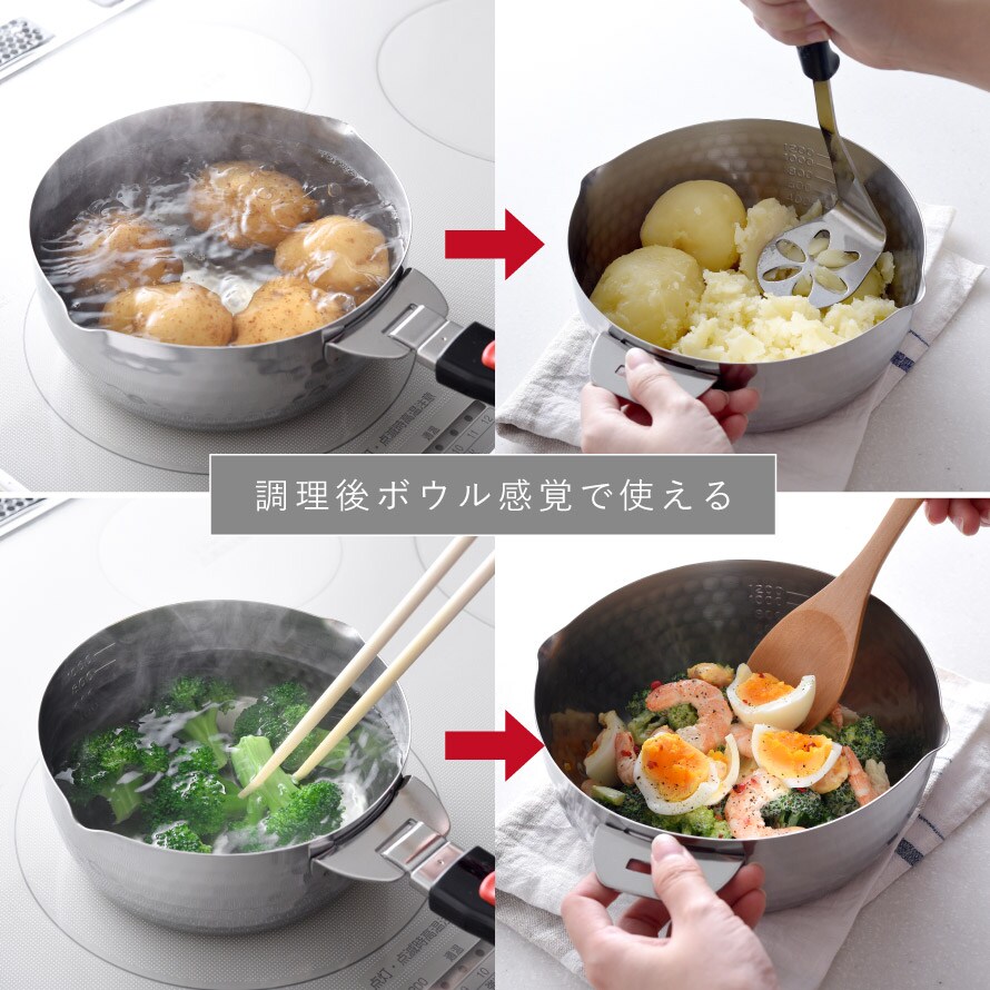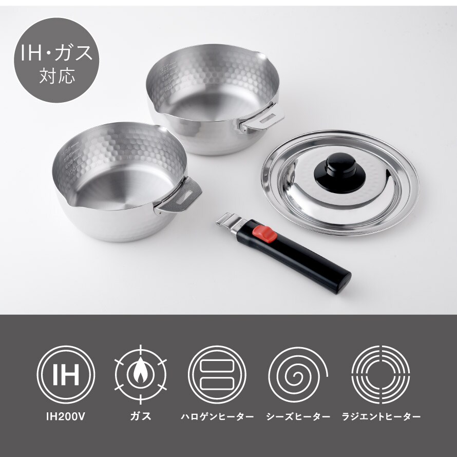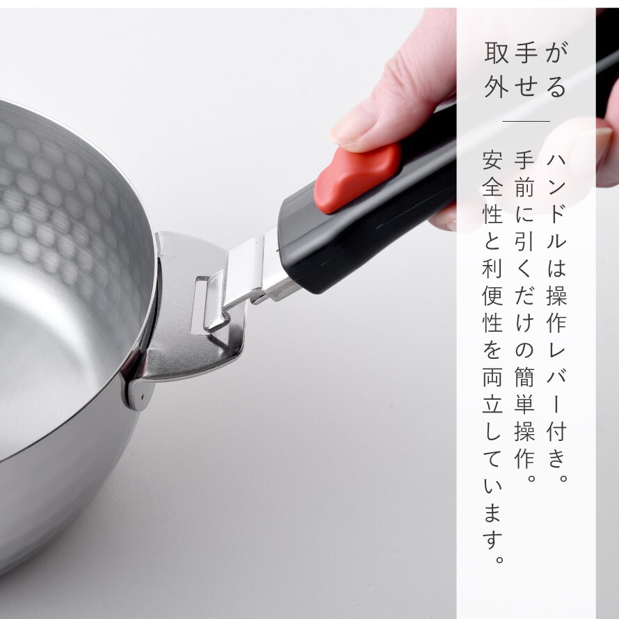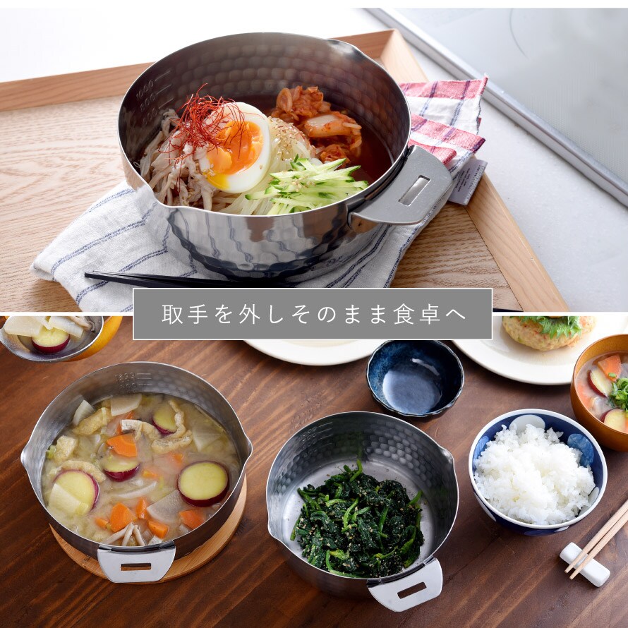 取っ手が取れる 鍋 日本製 ステンレス 燕三条 IH対応 雪平鍋 取っ手 取り外し 注ぎ口 目盛り付き ボウルにもなる取っ手が外せる雪平鍋セット