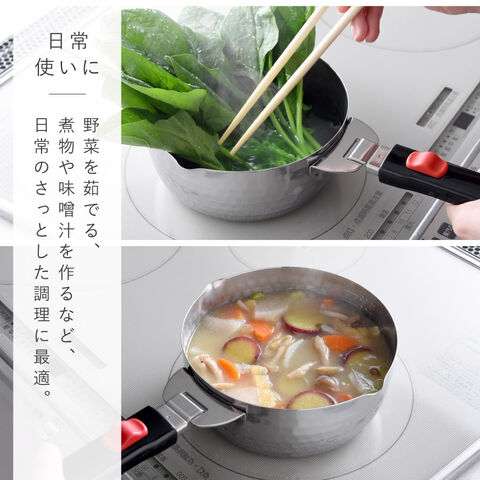 お湯を沸かす、野菜を茹でる、煮物や味噌汁を作るなど、日常使いから下ごしらえまで幅広く活躍します。サイズ違いの鍋が揃っているので、調理量に合わせて使い分けができ効率的。