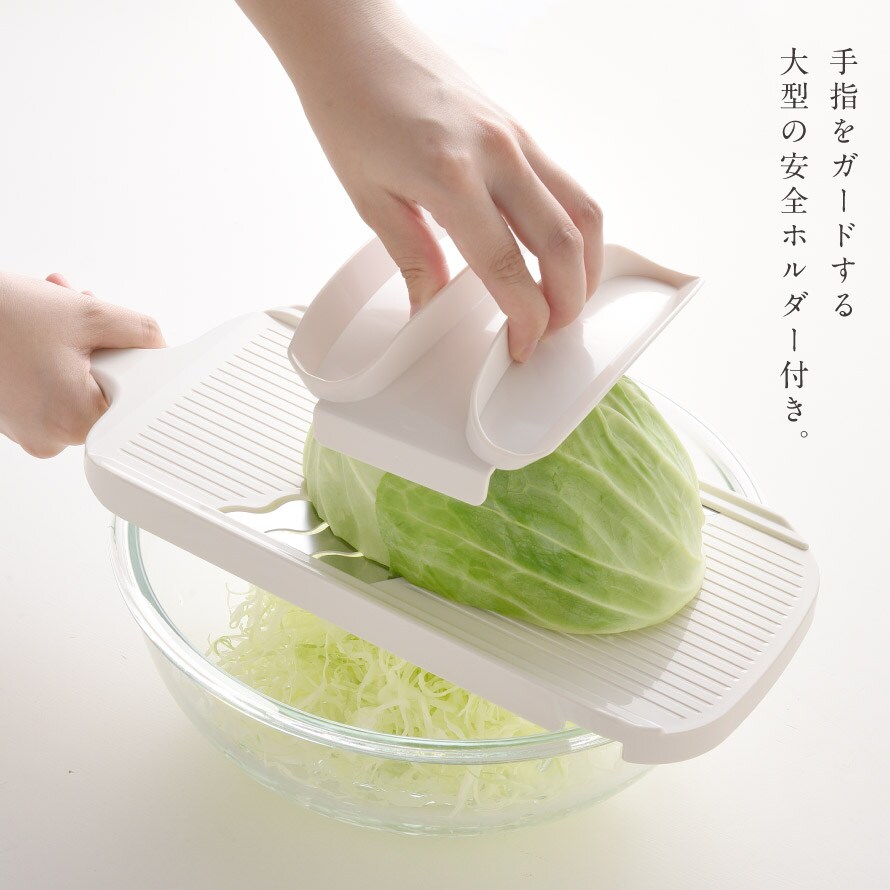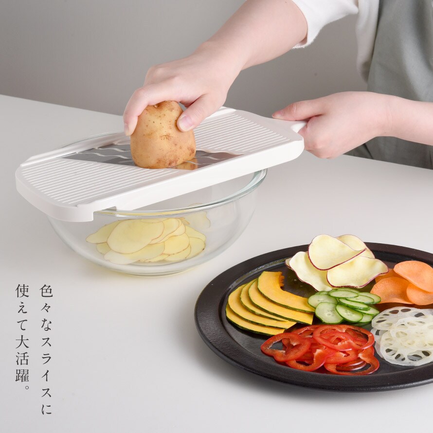 キャベツの千切りはもちろん、玉ねぎやトマト、人参やきゅうりのスライスにもおすすめ。簡単なので、気軽にスライスして、ふだんの食卓に少しの特別感を加えてくれる便利なアイテムです。