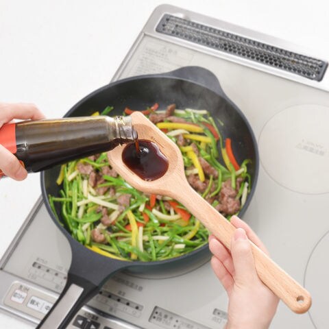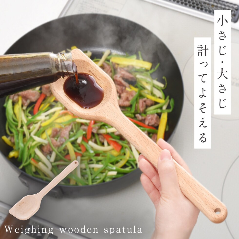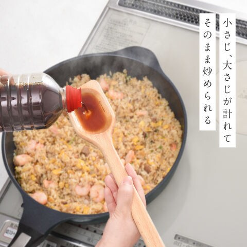 小さじ、大さじが計れてそのまま炒められる!温もり感じる木製べら。