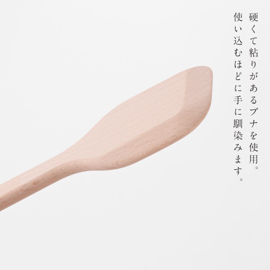 材質は硬くて粘りがあるブナを使用。きめ細かい木目で優しい手触り。
