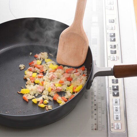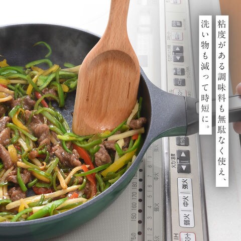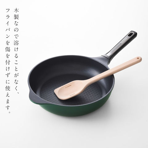 木製なので溶けることがなく、コーティングのフライパンにも優しく、傷を付けずに使えます。