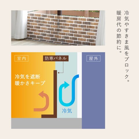 室内に侵入する冷気をシャットアウト。冷気を防ぐ事で暖房効率を上げ、節電にも繋がる家計に嬉しいアイテムです。
