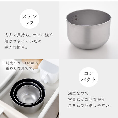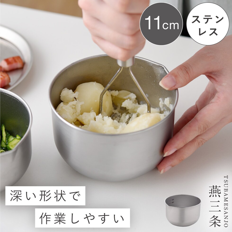 直径11cmのコンパクトサイズで、調理スペースを圧迫せず効率的に作業可能。深型なので容量感がありながらスリムで収納しやすく、キッチン周りをすっきり保てます。