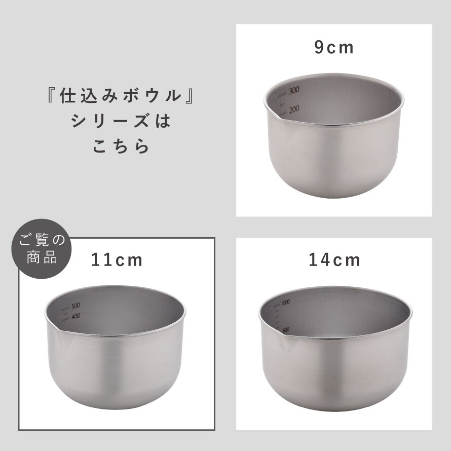 燕三条 ステンレス ボウル 小さめ 11cm ステンレスボウル 小さい 深型 深め 卵 注ぎ口 目盛り付き キッチン 調理器具 逸品物創 深めの仕込みボウル 11cm