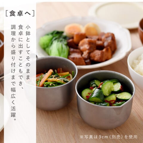 小鉢としてそのまま食卓に出すこともでき、調理から盛り付けまで幅広く活躍します。