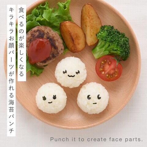 お弁当やおうちごはんを手軽にかわいくできる、海苔パンチ3種セット。キャラ弁づくりやデコごはん初心者の方でも、顔パーツ作りが簡単にでき、毎日の食卓やお弁当づくりに楽しいアクセントを加えられます。