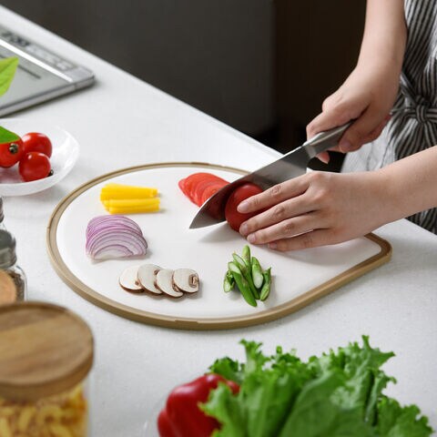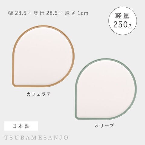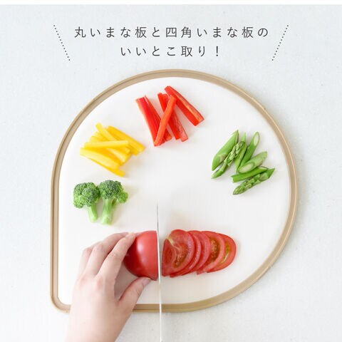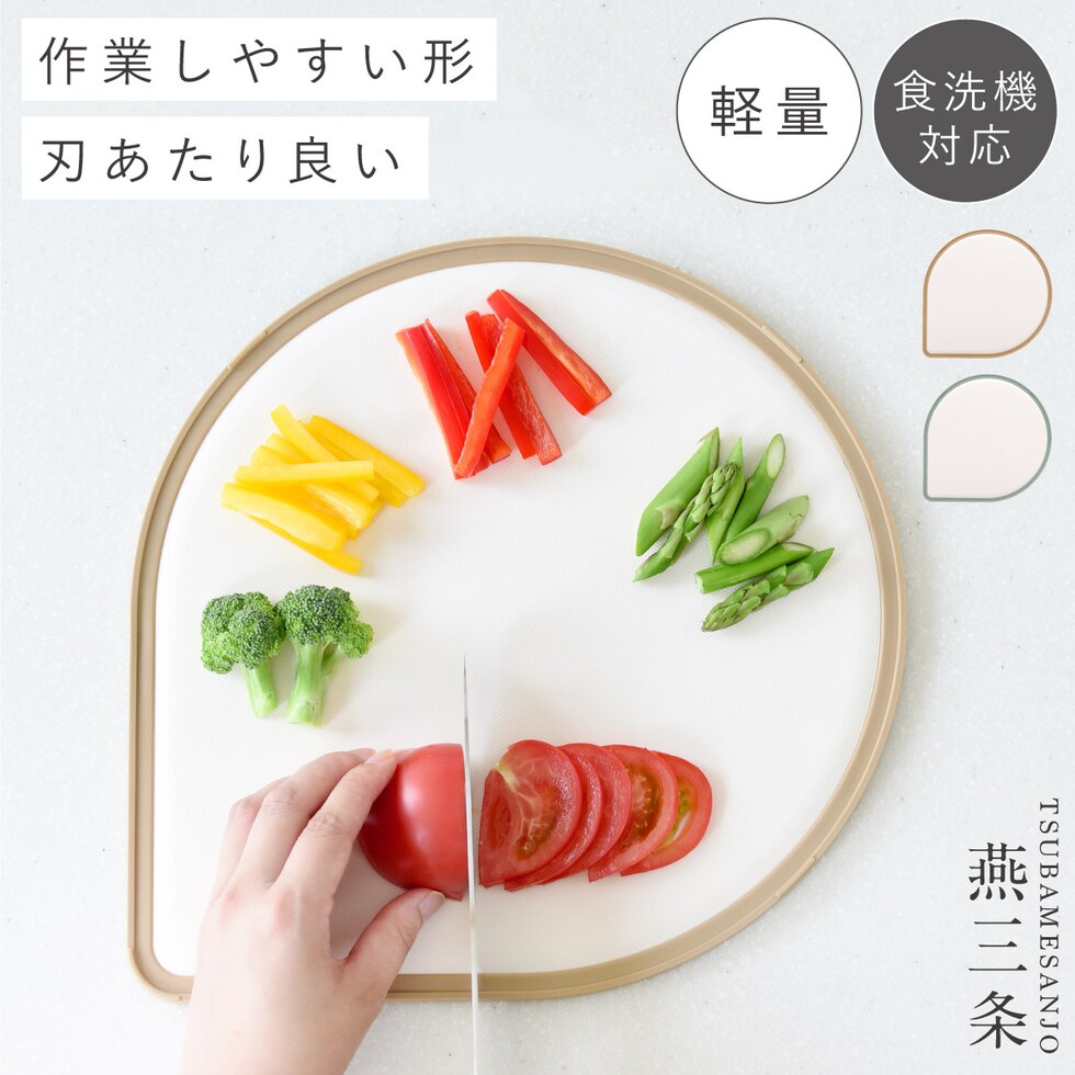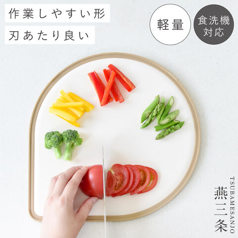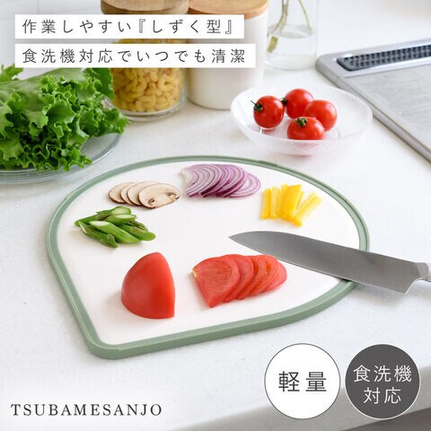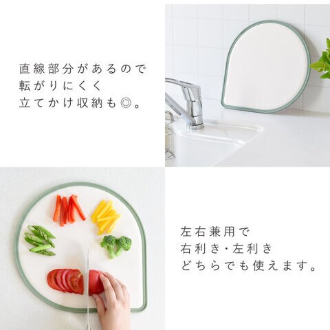 しずく型で、切った食材を寄せるスペースとカットスペースを確保できる、作業性にこだわったまな板。