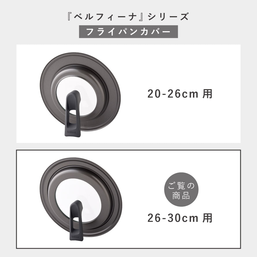 フライパン 蓋 自立 立つ スタンド 26cm 28cm 30cm フライパン蓋 フタ ガラス 吊り下げ ベルフィーナ 日本製 取っ手も便利なフライパンカバー 26-30cm