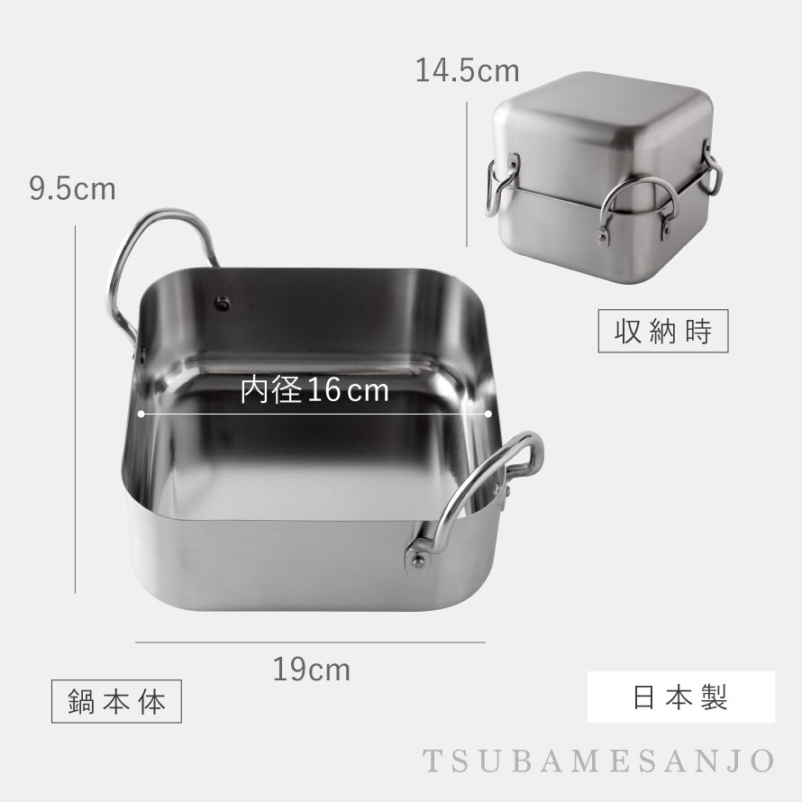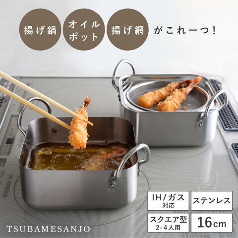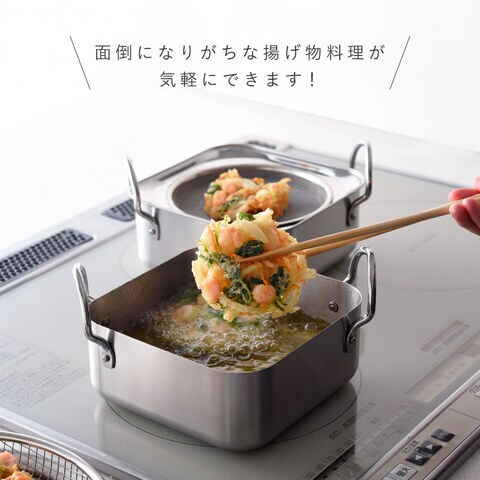 揚げ物 鍋 IH対応 ガス 燕三条 日本製 16cm 四角 ミニ 小さい 天ぷら鍋 ステンレス 角型 スクエア 取っ手も場所を取らない油ターン スクエア