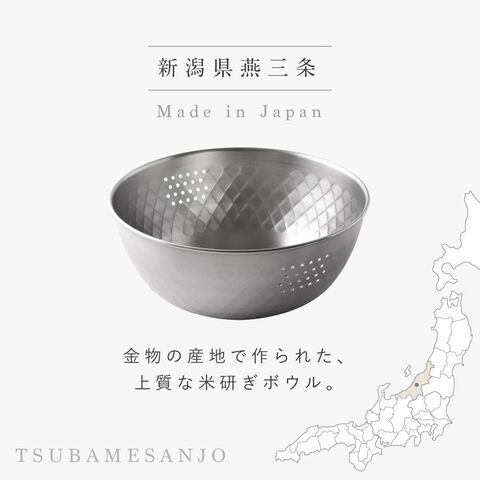 1~2合のお米を手早く、おいしく研ぐために米処・新潟のメーカーが作った、洗米専用のステンレスボウル。