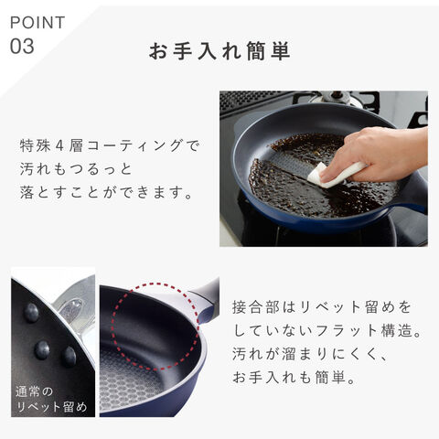軽さと扱いやすさを活かし、日常使いのフライパンとして快適にお使いいただけます。