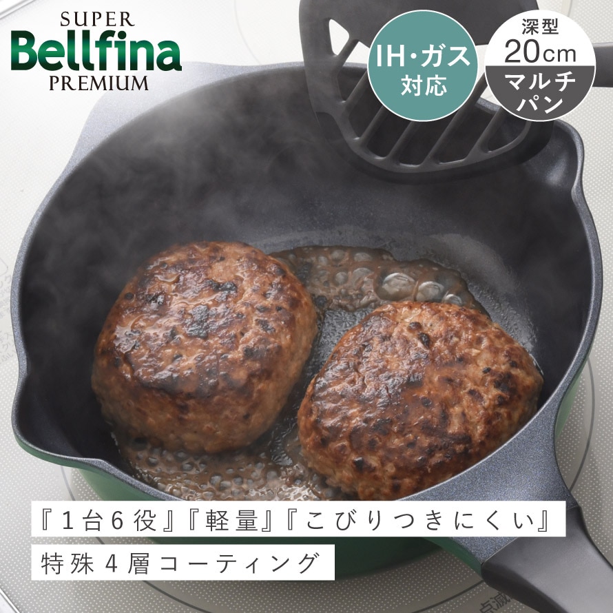 ベルフィーナ マルチパン 20cm ih対応 フライパン 深型 IH ガス 両用 軽量 軽い エンボス加工 焦げ付きにくい スーパーベルフィーナプレミアム マルチパン20cm PFOAフリー PFOSフリー