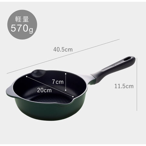 20cmの扱いやすいサイズ感で、少人数分の調理に最適。