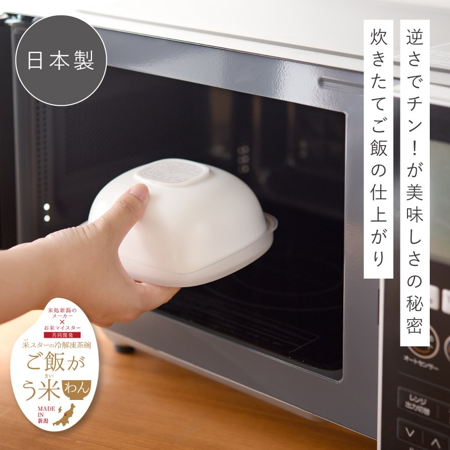 「ご飯がう米(まい)わん」は、米処新潟の企業と、五つ星お米マイスター・古守浩子氏が生み出した、冷凍ご飯を美味しく解凍することにこだわった新発想の容器です。