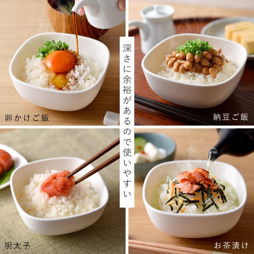 一膳分のご飯を入れても深さに余裕があるので、納豆や玉子、お好きなものをかけられます。ご飯だけでなくヘルシーな蒸し料理などにも。ブロッコリーなどの温野菜やシュウマイも、蒸したてのように楽しめます。