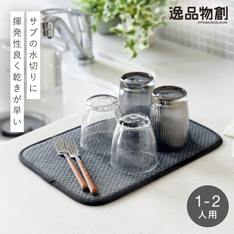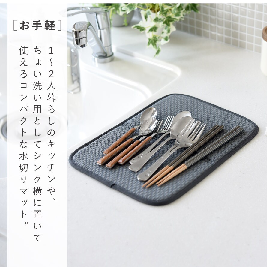 1人~2人暮らしのキッチンや、サブ水切りとしてコンパクトに使える水切りマット。