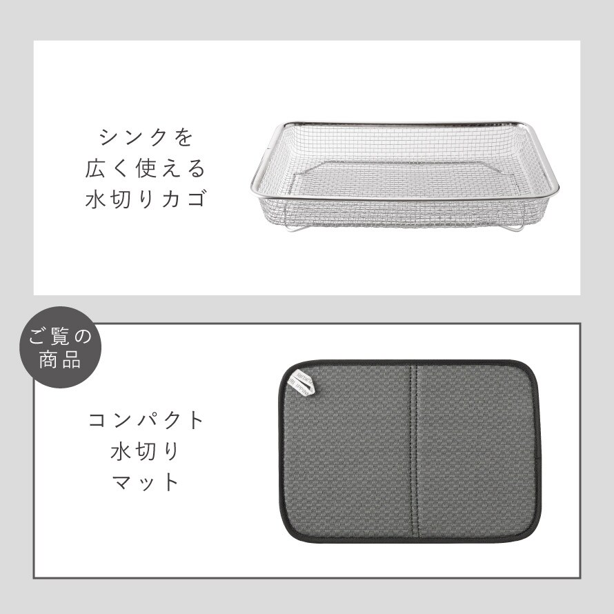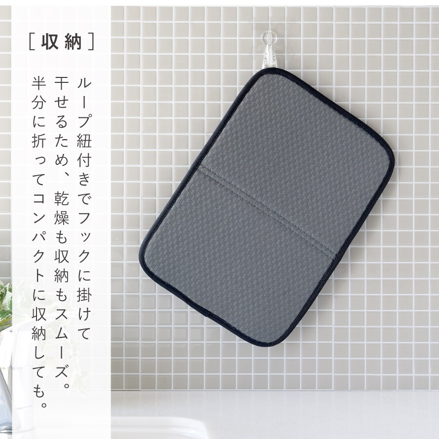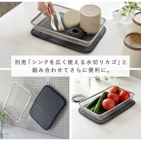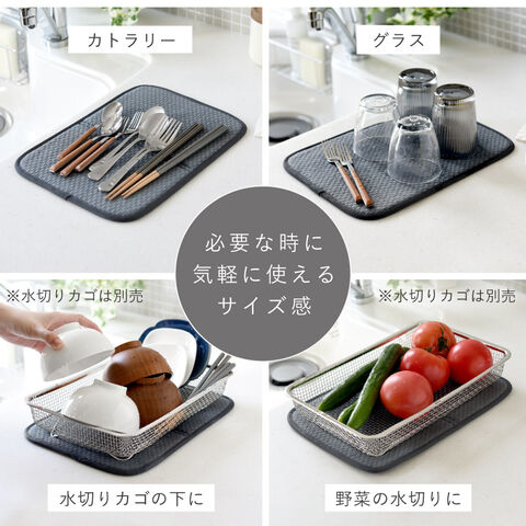 水切りカゴの下にセットすることで、滴る水をしっかり吸収し、シンクや作業台を水浸しにしません。