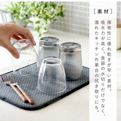 吸水力が高く、食器の水切りだけでなく、水ハネで濡れたキッチン作業台の拭き取りにも。