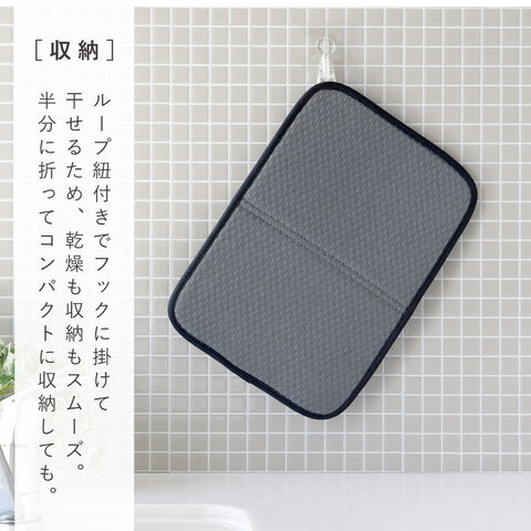 ループ紐付きでフックに掛けて干せるため、乾燥も収納もスムーズ。