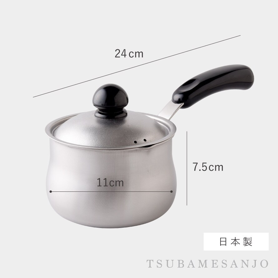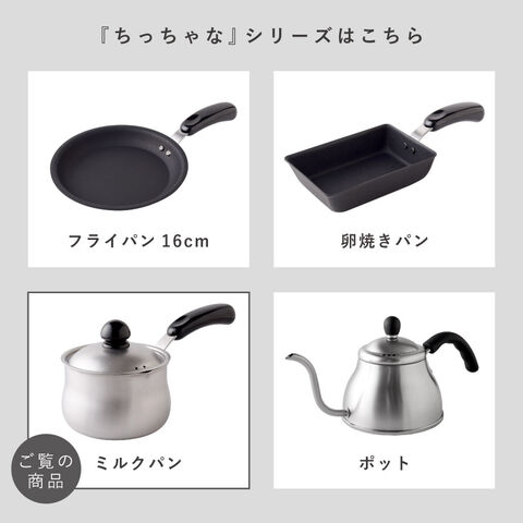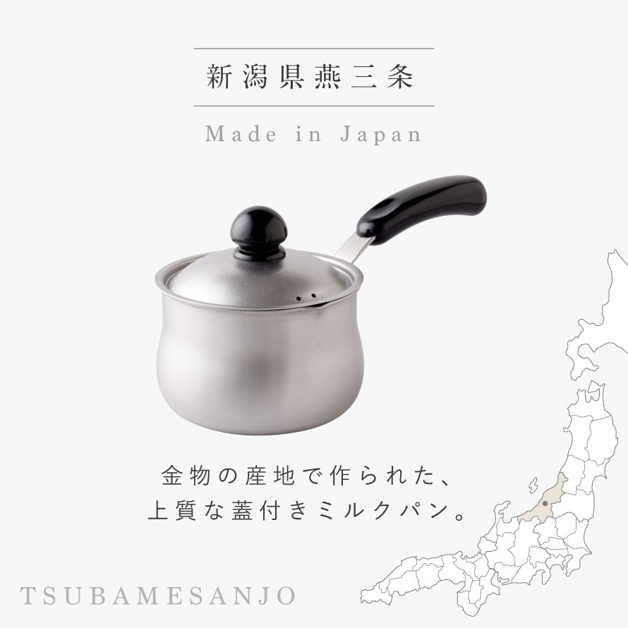 毎日のちょっとした調理にちょうどいい、「ちっちゃなシリーズ」のミルクパンです。金属加工で有名な新潟県燕三条地域で、職人が一つ一つ丁寧に仕上げた日本製。丈夫で長く使える品質と、安心して使えるつくりが魅力です。