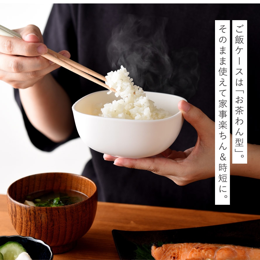しゃもじにも使われる素材を使用し、ご飯がこびりつきにくく、内側はフラットで洗いやすい設計。軽くて持ちやすく、落としても割れにくいところも◎。