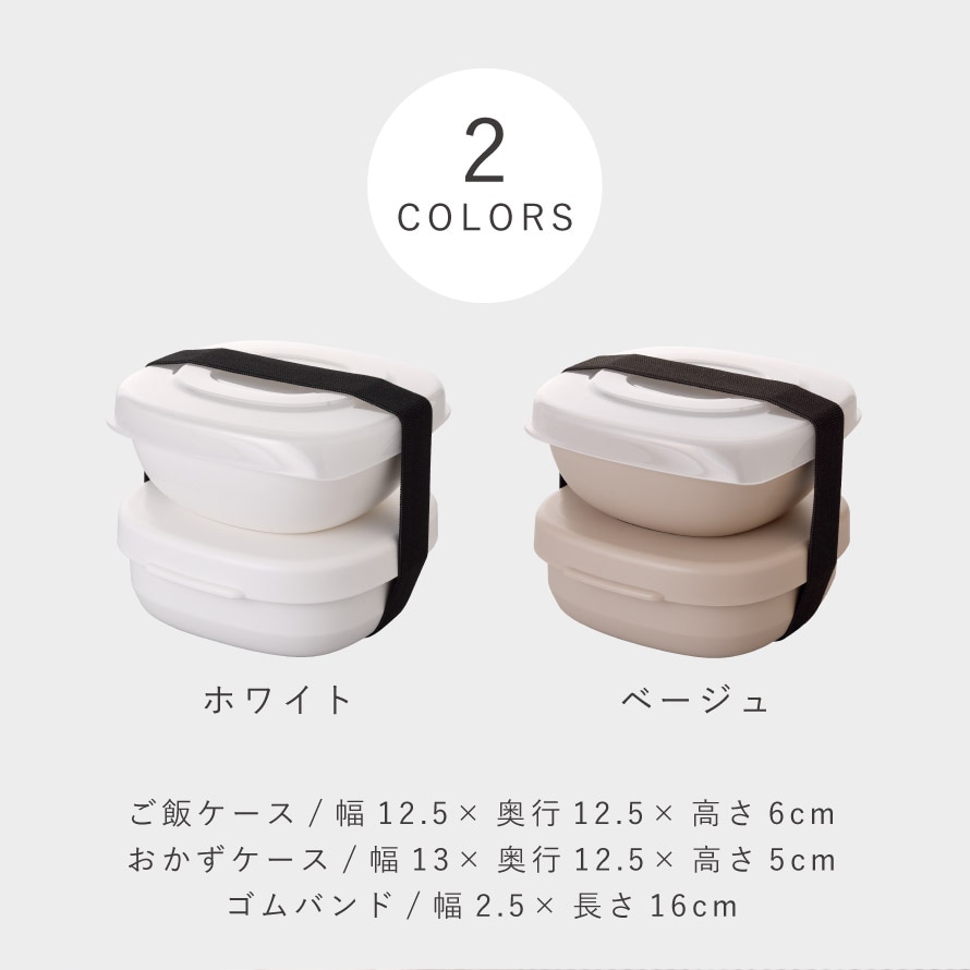 | サイズ | ご飯がう米わん/幅12.5×奥行12.5×高さ6cm、おかずケース/幅13×奥行12.5×高さ5cm、ゴムバンド/幅2.5×長さ16cm |