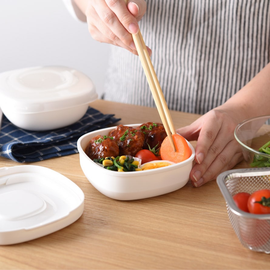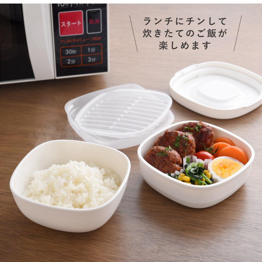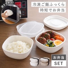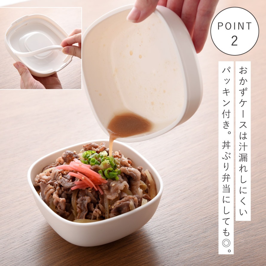 ランチタイムにチンしていつでも炊きたてのご飯の味が楽しめます。おかずケースは汁漏れしにくいパッキン付きで安心。おかずにどんぶりの具を入れて、どんぶり弁当にしても楽しくて◎。
