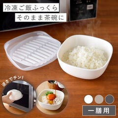 レンジで逆さにして加熱することで、余分な水分はスノコから落ち、蒸気で包み込むように温めます。冷凍ご飯もベチャッとせず、もっちりふっくら炊きたてのような仕上がりに。