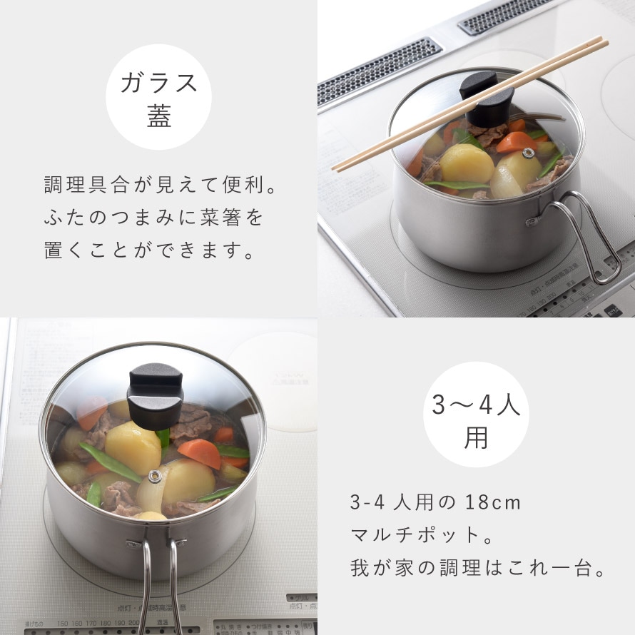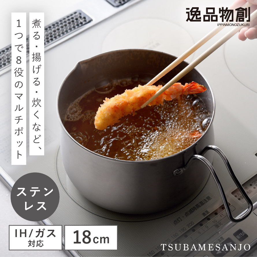 マルチポット ステンレス 18cm 燕三条 日本製 ih 鍋 蓋付き 小さい 揚げ物 天ぷら鍋 ご飯が炊ける 逸品物創 ステンレス マルチポット 18cm