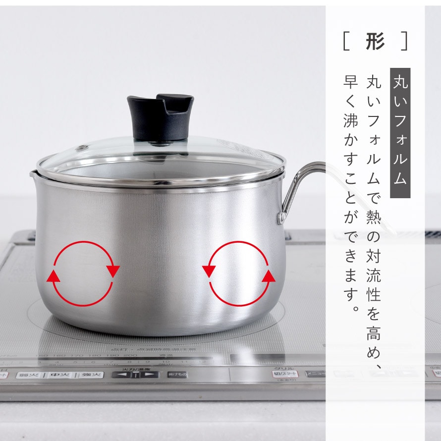 丸いフォルムで、熱の対流性を高め、お湯を早く沸かすことができます。