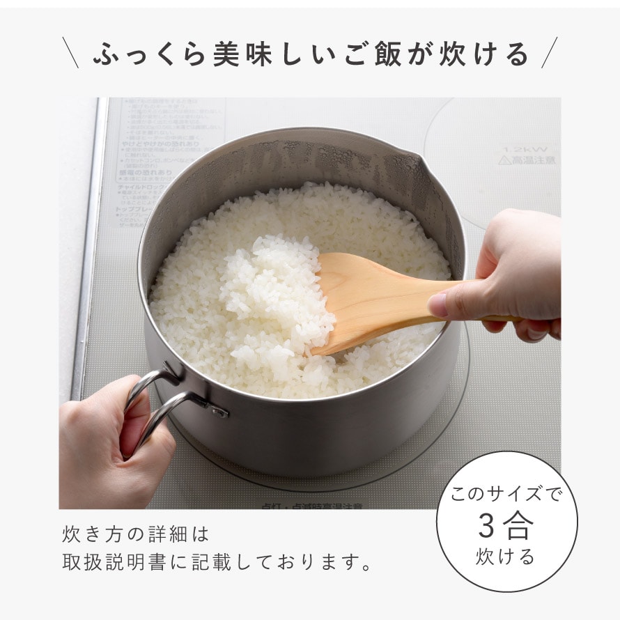 深さがあるので混ぜやすく、炒めたり和えたりも楽チン。揚げ物調理も油が飛び散りにくく回りを汚しにくい形です。レトルトパックも立てて温めることができます。コンパクトで省スペースなのにお米も炊ける優れもの。