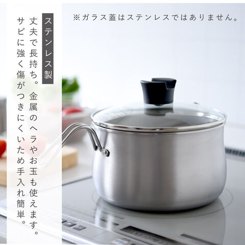 丈夫で長持ちなステンレス製。金属製のヘラやお玉も使えます。サビに強く、傷がつきにくいため手入れも簡単です。