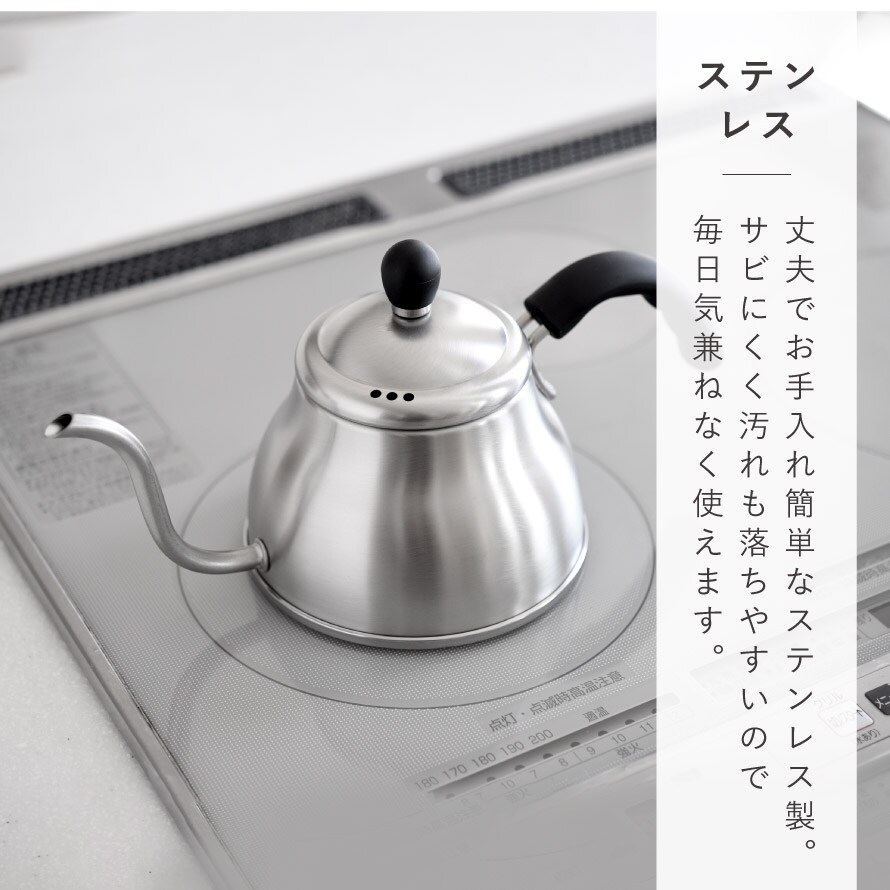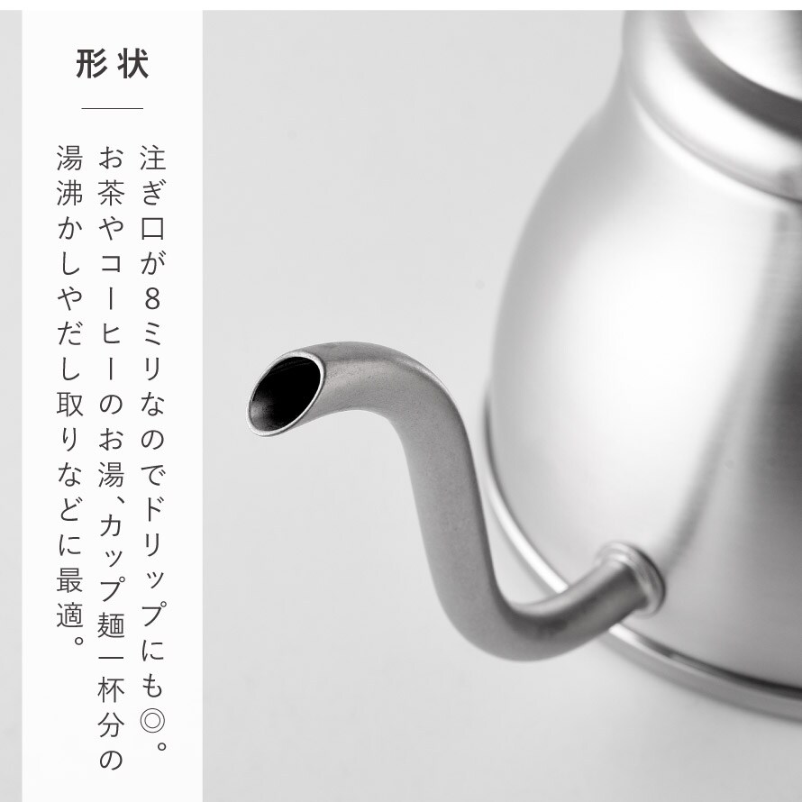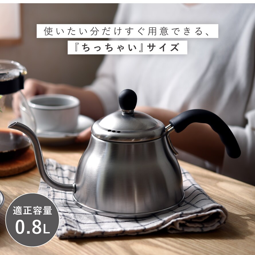 注ぎ口が8mmなのでドリップにも最適。容量は0.8Lです。(満水容量1.0L)