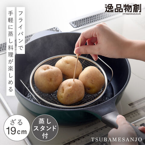 蒸しざる 蒸しかご 19cm 蒸し器 ステンレス 燕三条 日本製 フライパン 脚付き 蒸し網スタンド+お皿のざるセット ザル 浅型 蒸し料理 しゅうまい 時短料理 蒸し野菜