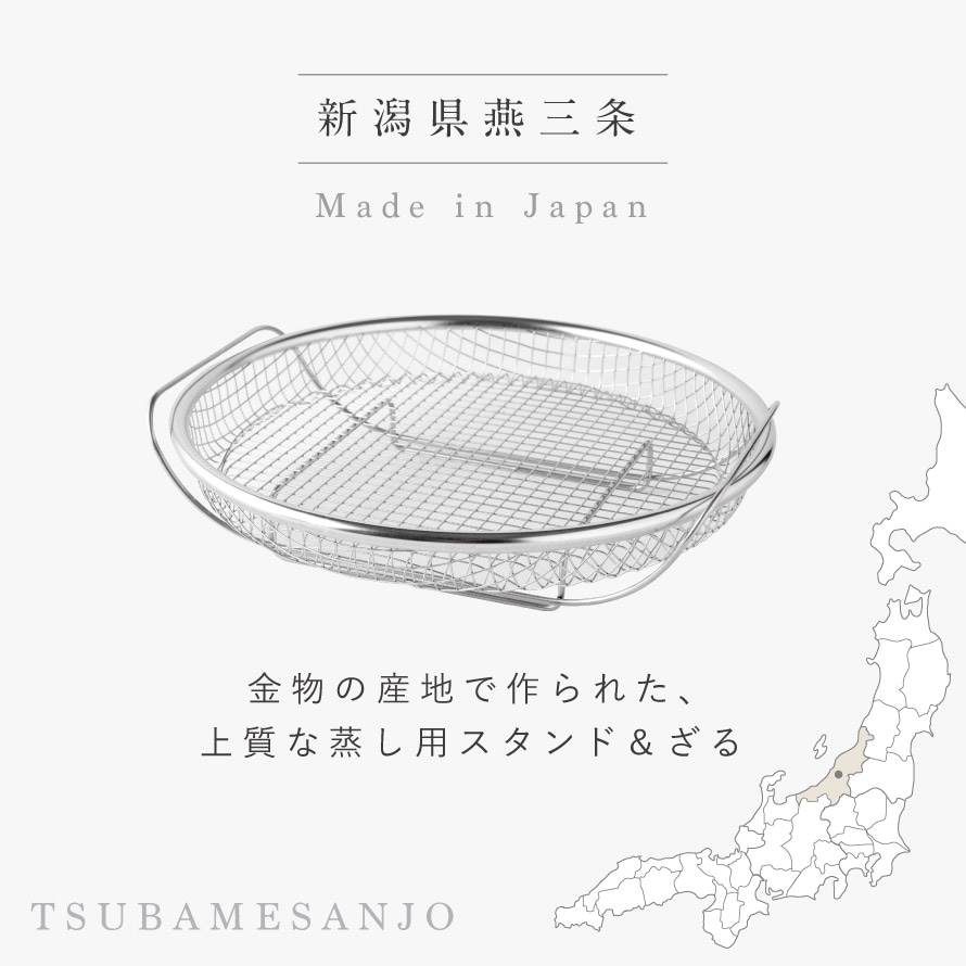 蒸しざる 蒸しかご 22cm 蒸し器 ステンレス 燕三条 日本製 フライパン 脚付き 蒸し網スタンド+お皿のざるセット ザル 浅型 蒸し料理 蒸し鍋用スタンド 時短料理 蒸し野菜